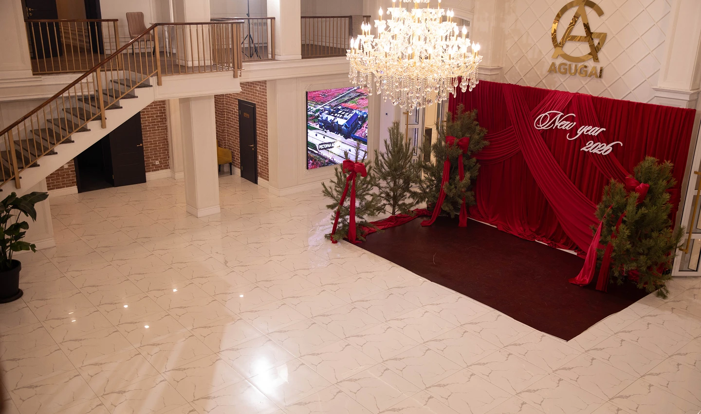 AGUGAI — это современный банкетный комплекс в Астане, созданный для проведения значимых и торжественных мероприятий. Пространство комплекса объединяет несколько банкетных залов разной вместимости, шатер и VIP-зоны, что позволяет подобрать оптимальный формат под любое событие — от камерного праздника до масштабного торжества на сотни гостей.